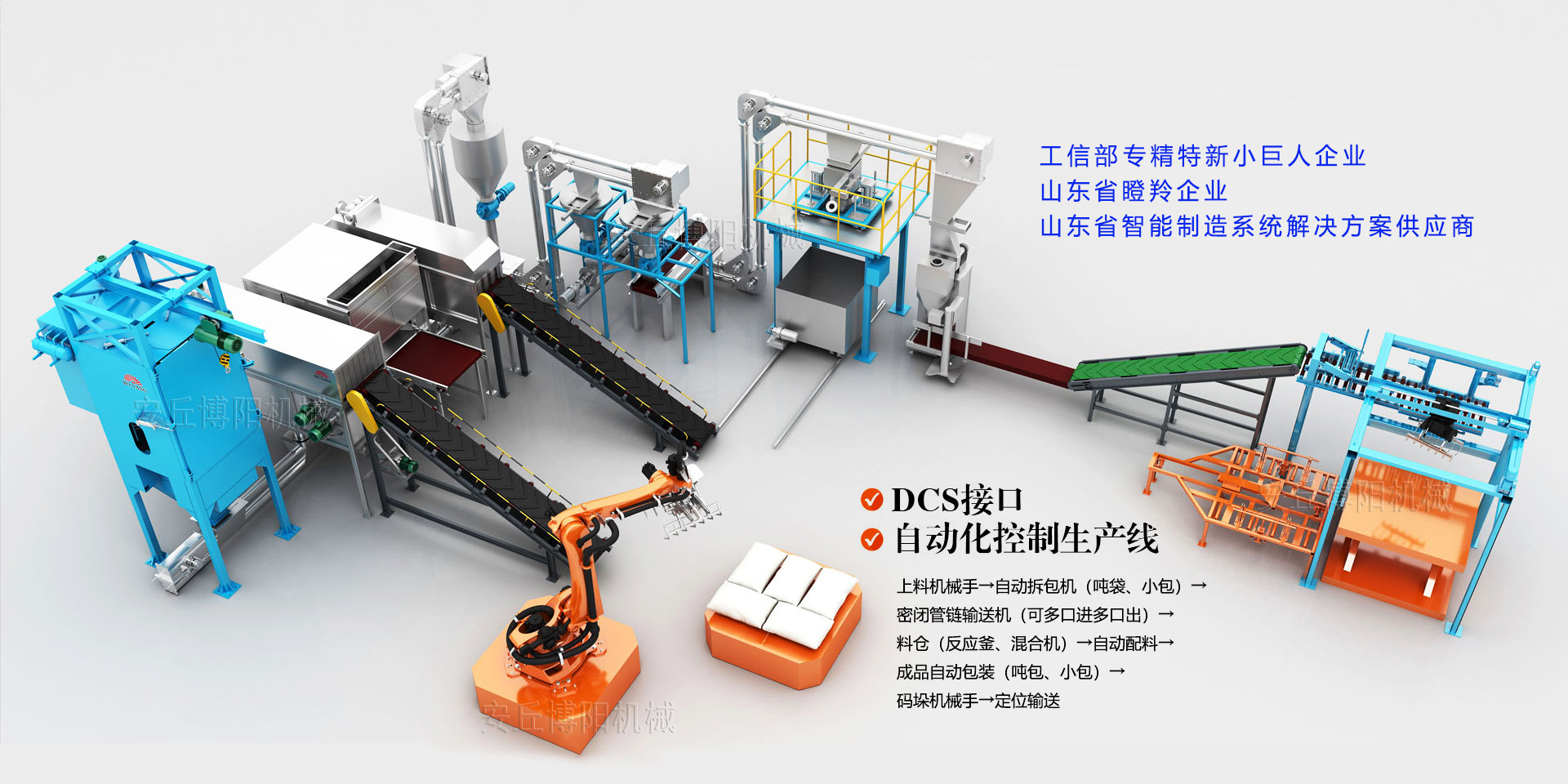 安丘博陽機械制造有限公司成立于2008年,是一家專注于自動化包裝、碼垛、拆垛拆包投料及智能倉儲物流裝備定制的研發(fā)型“生產(chǎn)+服務(wù)”企業(yè),業(yè)務(wù)包括包裝碼垛生產(chǎn)線、拆垛拆包投料生產(chǎn)線、AGV搬運立體庫倉儲生產(chǎn)線、智能裝卸車生產(chǎn)線制造和提供制造業(yè)生產(chǎn)線工業(yè)4.0升級改造服務(wù)等5大板塊,涵蓋化工、醫(yī)藥、農(nóng)藥、化肥、鹽堿、新能源、新材料、有色金屬、橡膠、塑料、食品、礦山、建材、危廢、鋁電二十多個行業(yè)。是中鋁集團、中國水電集團、北方稀土集團、華友控股集團、兗礦集團等國內(nèi)頭部企業(yè)優(yōu)質(zhì)合作伙伴。